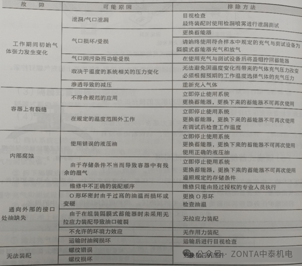 ① 氣閥漏氣嚴(yán)重,皮囊內(nèi)根本無(wú)氮?dú)?,以及皮囊破損進(jìn)油。