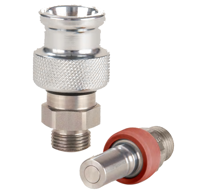 NSR 系列則是一款無溢流型快換接頭,它采用平齊端面閥芯設(shè)計,壓降損失 小,在連接或斷開時可減少溢流量和夾氣量。同時, 外部防塵套還能防止灰塵、 水等污染物在連接時進入管路內(nèi)部。該系列接頭通過歐洲 DIN EN61373:1999 抗震動標(biāo)準(zhǔn),適用于軌道交通行業(yè),為制動系統(tǒng)的可靠性保駕護航。
