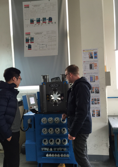 丹麥風(fēng)力發(fā)電液壓變漿客戶到中泰車間參觀考察