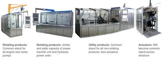 HSD引入了通用測試臺架,并對新臺架做出戰(zhàn)略性部署 – 經(jīng)規(guī)劃,單個通用臺架擁有多種測試能力,取代并減少原有單一用途臺架的數(shù)量。發(fā)展到現(xiàn)在,通用臺架能支持不同零件的測試工作。此項改變將HSD總部工廠的臺架數(shù)量從83個減少到不到40個,測試臺配置也從70多種降低到只有16種,大幅度提升運作效率。此外,機(jī)器數(shù)量的減少和生產(chǎn)效率的提高也能幫助降低能耗及使用成本。