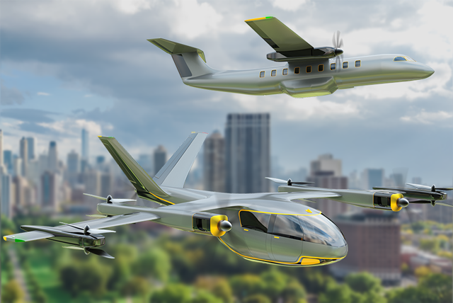 混合動(dòng)力AAM飛行器采用機(jī)載發(fā)電設(shè)備(例如氫燃料電池或小型燃?xì)廨啓C(jī))產(chǎn)生電力,供推進(jìn)系統(tǒng)和飛控系統(tǒng)、環(huán)控系統(tǒng)、電剎車和其他附件使用。區(qū)別于小區(qū)域內(nèi)短途空中交通,混動(dòng)飛行器更適合短途城際航線,可采用傳統(tǒng)固定翼飛機(jī)的起落模式或垂直起降模式?;靹?dòng)飛行器或能為節(jié)能減排做出巨大貢獻(xiàn),是航運(yùn)市場從傳統(tǒng)動(dòng)力飛機(jī)向全電飛機(jī)發(fā)展的重要過渡。
