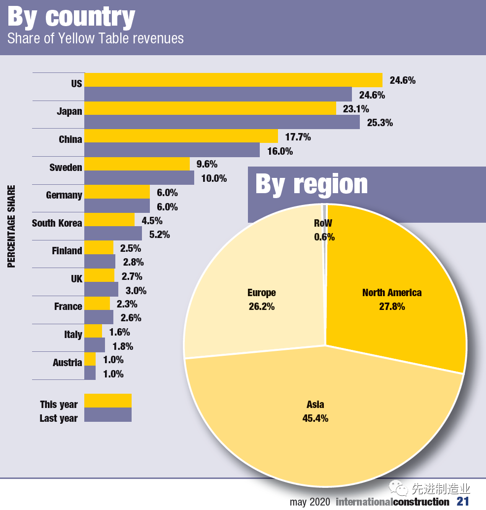 世界領先的工程機械信息提供商英國KHL集團旗下《國際建設》雜志(International Construction) 5月發(fā)布了2020年度全球工程機械制造商50強排行榜 (Yellow Table 2020)。