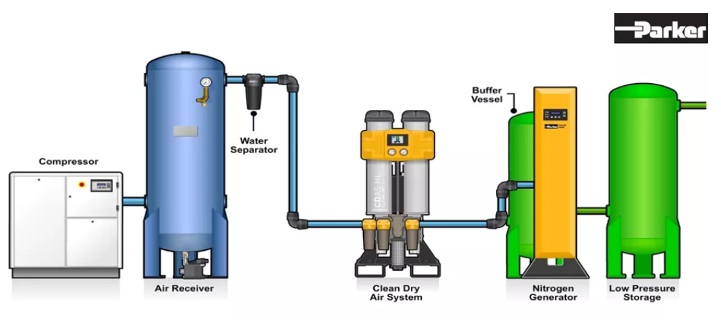 接下來(lái),經(jīng)過(guò)凈化的壓縮氣體便可進(jìn)入氮?dú)獍l(fā)生器。