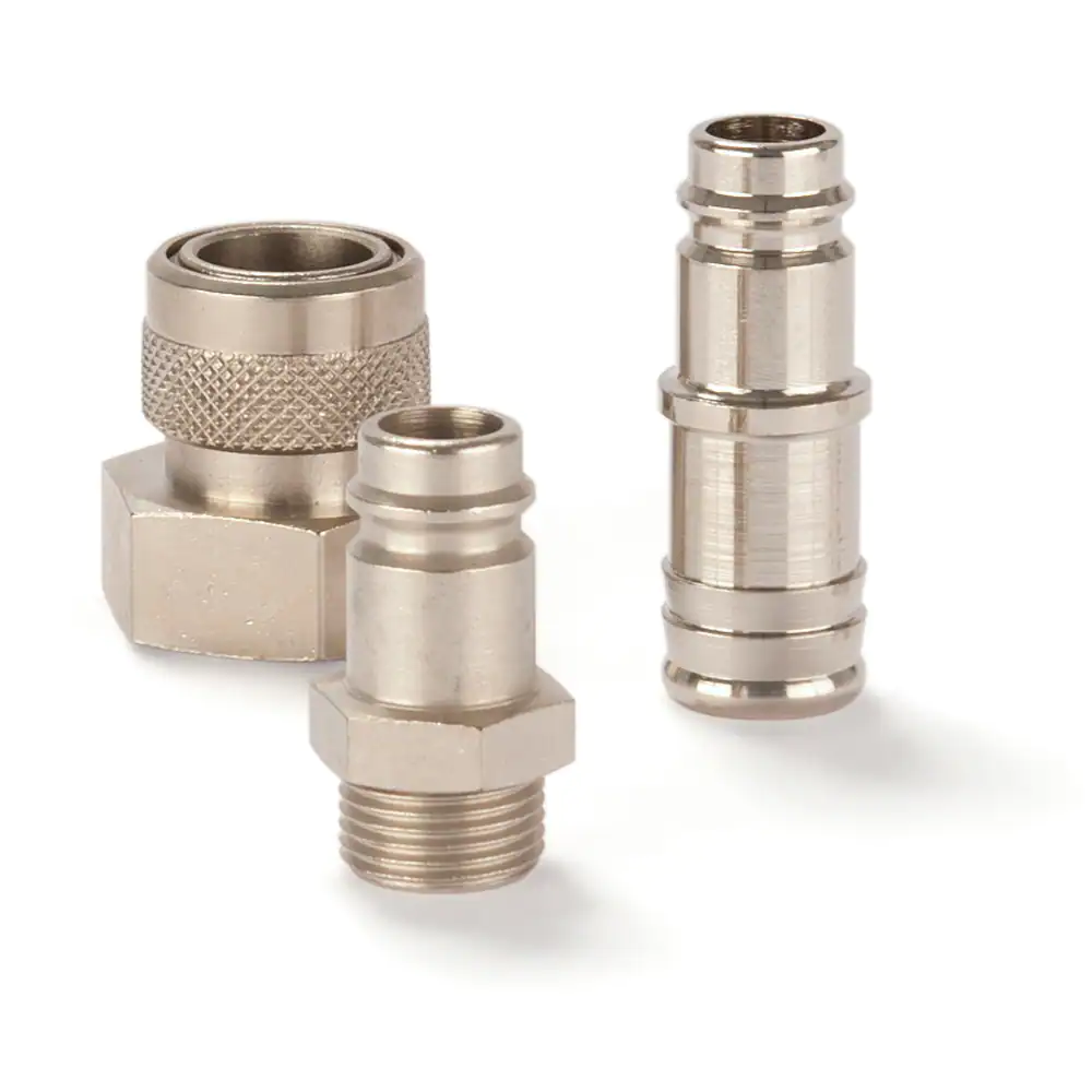 該系列快換接頭公稱(chēng)通徑是10mm,主要用于氣動(dòng)以及食品輸送的應(yīng)用,耐壓可達(dá)35bar。該系列快換結(jié)構(gòu)設(shè)計(jì)符合派克內(nèi)部的設(shè)計(jì)??蛇x接頭材料:銅鍍鎳。