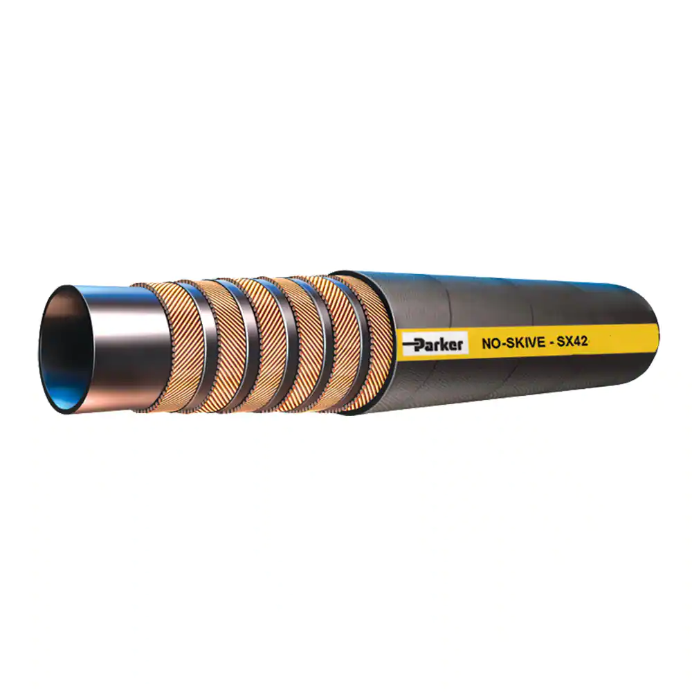派克不剝膠螺旋液壓管 SX42 用于壓力不超過42.0 MPa通用高壓液壓的應(yīng)用。軟管適用接頭是 Parkrimp 不剝膠73和77系列。