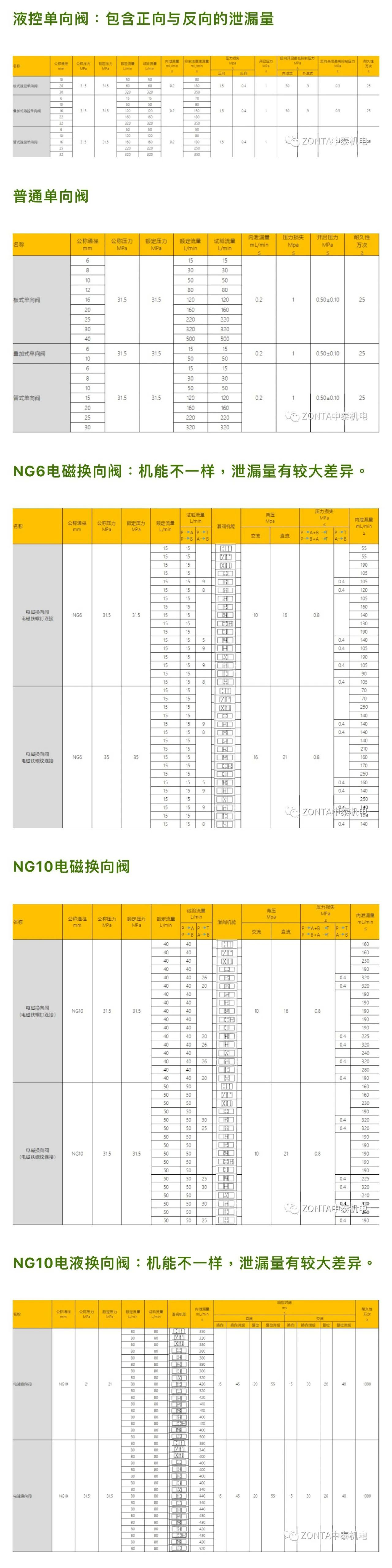 國標(biāo)規(guī)定的各種液壓閥的泄漏量及相關(guān)特性參數(shù)