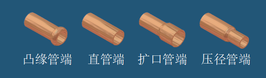 制冷銅管,鋁材,軟質(zhì)不銹鋼, 外形包括凸緣管端,直管端,擴(kuò)口管端,壓 徑管端