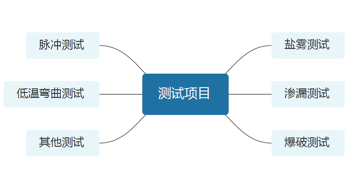 整個(gè)測試過程中,被測軟管以及相關(guān)沒有出現(xiàn)破裂;當(dāng)進(jìn)行恢復(fù)室溫后的耐壓試驗(yàn)時(shí),被測軟管不能出現(xiàn)泄漏或破裂。